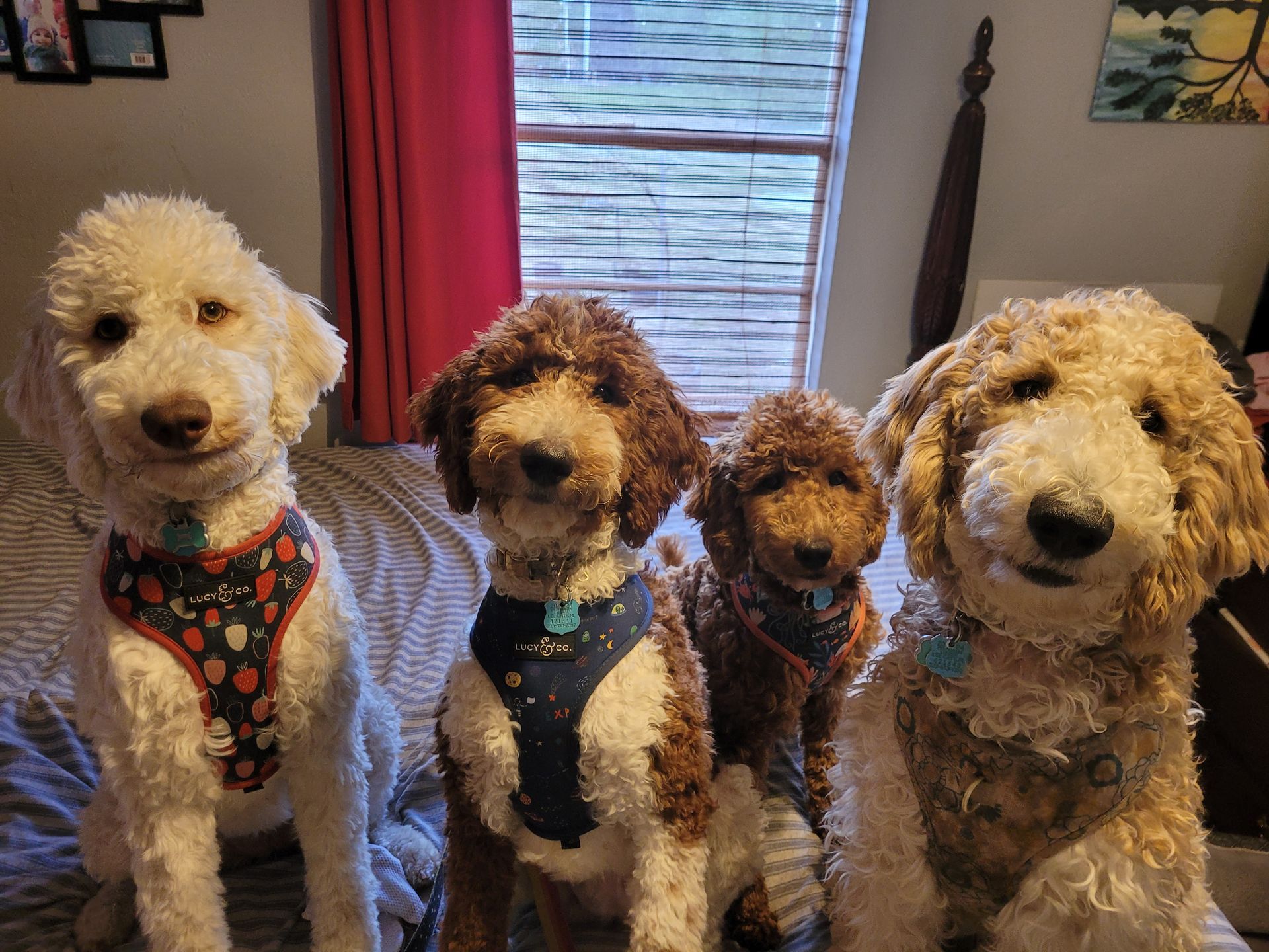 Our breeding program features hypoallergenic and service animal dogs of every size and color, Goldendoodle, Labradoodle, Aussiedoodle, Poodle and .Labrador Retriever We have over 20 years of experience with dog training, raised multiple foster puppies, and have been blessed with a lifetime of loving many family pets. Our Poodles are AKC registered, our Doodles come from Champion lines, and our Labs come from both service animal and hunting champion lines.