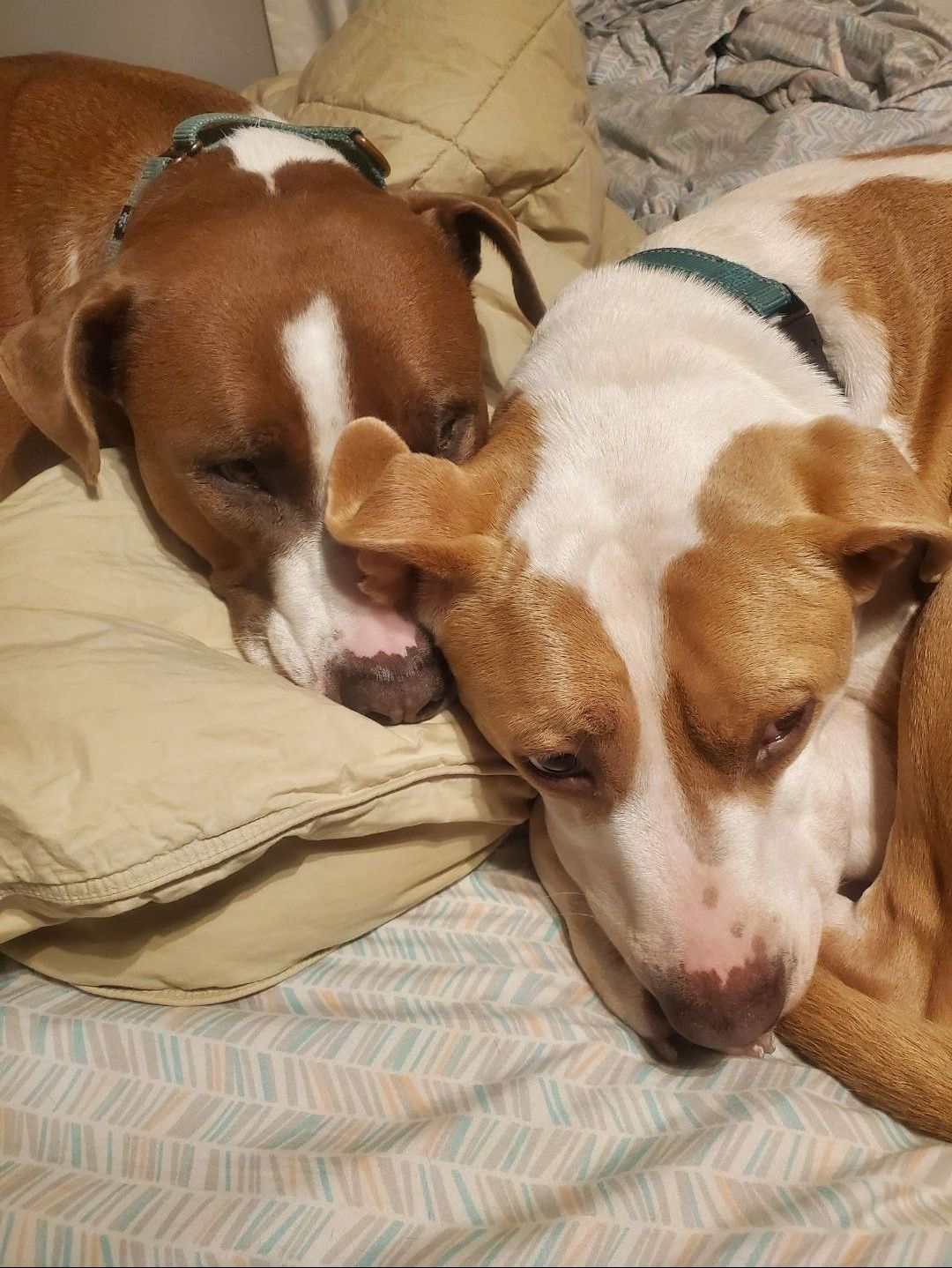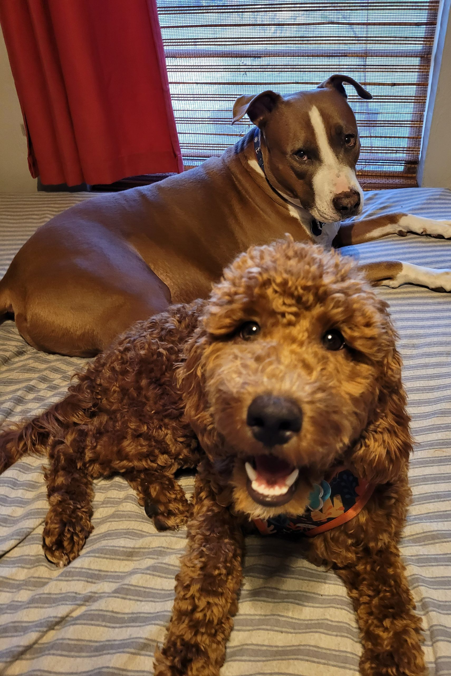 Your puppy may have learned the traditional Pit "frog dog" way of sprawling out on the floor or the Pit twitch playtime initiation. They will probably also be obsessed with the mail carrier since they see our hooligans be excited to say hello every day.