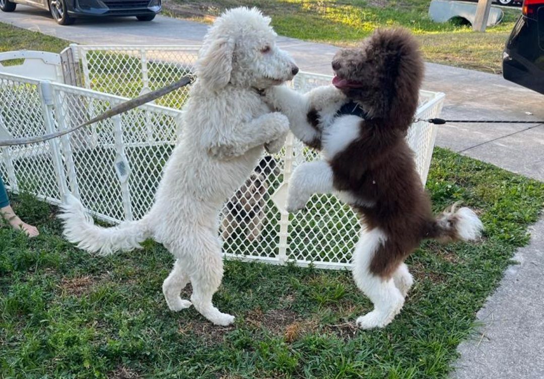 She takes a little time to interact with other new dogs but she soon is in the middle of the dog pile.